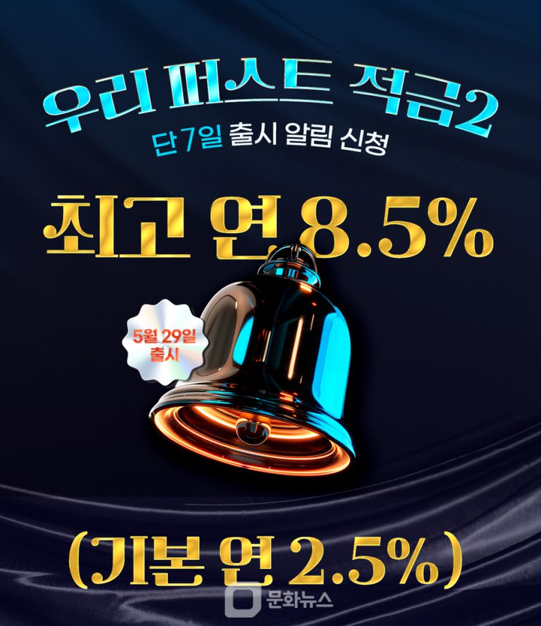(문화뉴스 차미경 기자) 우리은행이 고금리 예·적금 상품을 찾는 고객 수요에 대응해 '우리 퍼스트 적금 2'를 오는 29일 출시한다.
