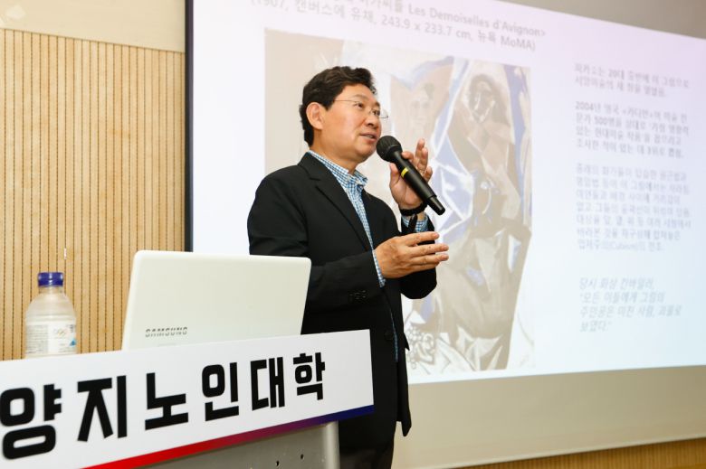 이상일 용인특례시장은 21일 처인구 양지면 양지노인대학에서 수강생 100여 명을 대상으로 '인간의 상상력과 그림의 세계'를 주제로 특별 강연을 했다.