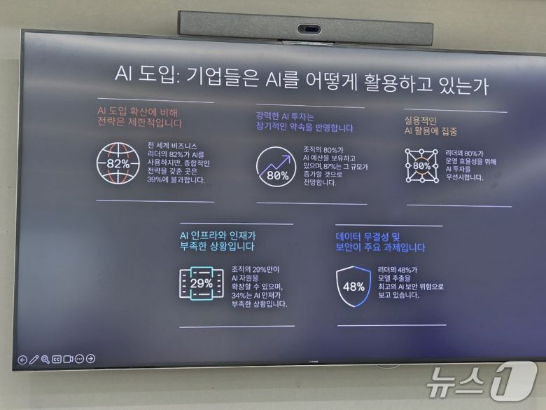 (성남=뉴스1) 박주평 기자 = 주요 글로벌 기업의 82%가 일상적인 업무에 인공지능(AI) 애플리케이션을 도입하는 등 AI가 빠르게 확산하고 있지만, 기업들의 구체적인 전략과 인프라, 인재가 부족해 괴리가 큰 것으로 나타났다.