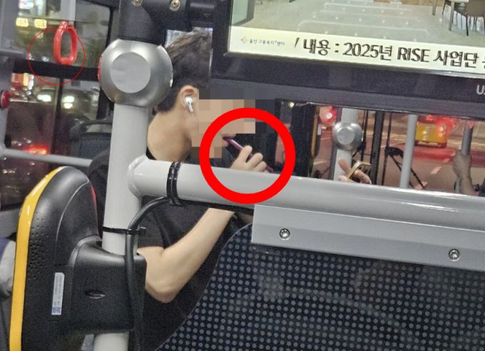 울산 시내버스 안에서 양치질을 하는 학생의 모습이 목격돼 논란이다.