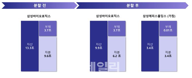2025년 1분기 재무상태표 기준 분할 전후 재무구조(자료=삼성바이오로직스) |