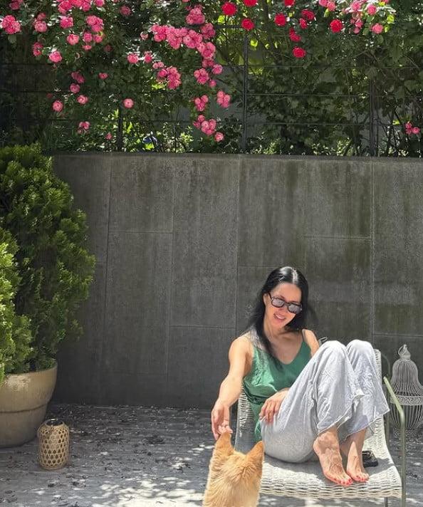 공개된 사진들 속에는 엄정화가 자신의 집 마당에서 여유로운 시간을 만끽하고 있는 모습. 특히 장미꽃으로 뒤덮인 마당은 휴양지를 방불케하는 비주얼을 뽐내고 있어 눈길을 끌었다.