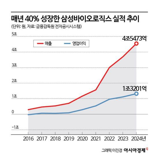 이번 지배구조 개편은 미래 먹거리인 바이오가 그룹 차원에서도 존재감을 분명히 하는 계기가 될 것으로 보인다. 2016년 이후 삼성바이오로직스는 그룹 내에서 독보적인 성장률을 기록해왔다. 2016년부터 지난해까지 삼성그룹의 비금융 주요 계열사 11곳의 실적을 비교해봤더니 삼성바이오로직스는 지난 8년간 연평균 성장률(CAGR·매출액 기준) 40.79%를 기록해 그룹 내에서 성장률이 가장 높은 것으로 나타났다.