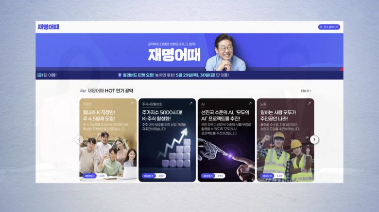 더불어민주당 선거대책위원회가 이재명 후보의 대표 공약을 한눈에 확인할 수 있는 대선 캠페인 사이트 '재명어때'를 개설했습니다.