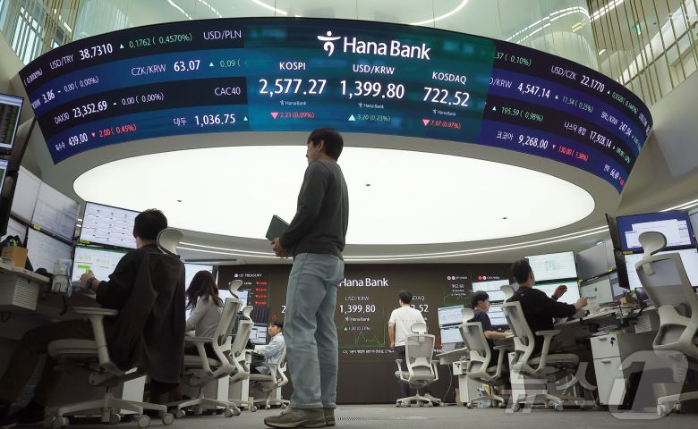 서울 중구 하나은행 본점 딜링룸 전광판에 코스피 종가 현황이 표시돼 있다./뉴스1 ⓒ News1 김진환 기자