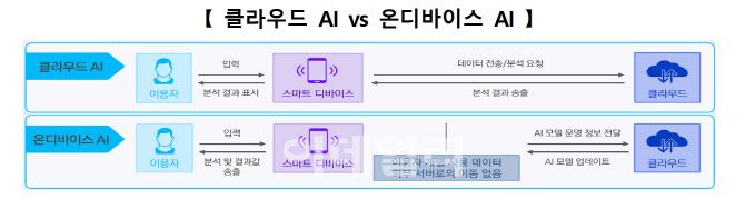 온디바이스AI는 물리적으로 떨어진 서버에 연산 없이, 자체 가속 플랫폼을 탑재해 AI 애플리케이션을 모바일 등 기기에서 직접 실행할 수 있는 기술을 뜻한다. 클라우드 서버에 연결하지 않고도 자체적으로 AI 추론 연산이 가능한 저지연·저전력 반도체다. 서버로 데이터를 송수신 하지 않기 때문에 실시간 리얼 타임으로 연산이 가능하고, 데이터 보안 역시 강화할 수 있다. 네트워크 의존성도 줄일 수 있다는 강점을 갖고 있다.