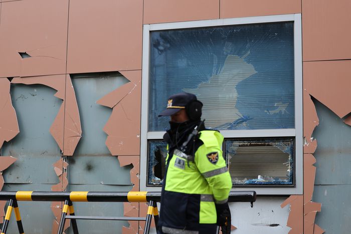 윤석열 전 대통령이 내란 우두머리 혐의로 구속되자 일부 윤 대통령 지지자들이 서울서부지방법원 내부로 난입해 불법폭력사태를 일으킨 1월 19일 오전 서부지법 외벽과 창문 등 시설물이 파손돼 있다. [사진 출처 = 연합뉴스] |