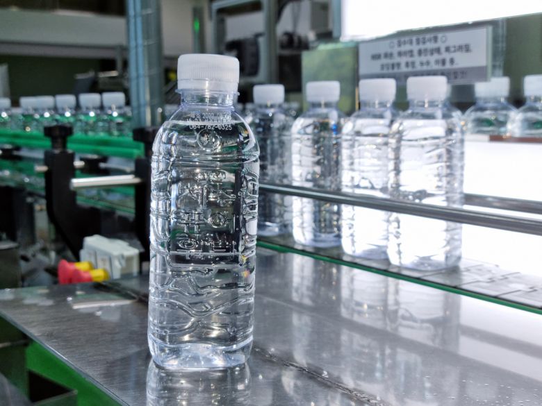 한국공항이 대한항공 등 기내용으로 제주에서 생산하는 먹는샘물 한진퓨어워터. 한국공항 제공 |