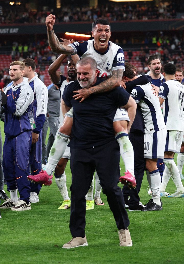 토트넘은 22일 오전 4시(이하 한국시간) 스페인 빌바오의 산 마메스 경기장에서 열린 2024-2025 유럽축구연맹(UEFA) 유로파리그(UEL) 결승전에서 맨체스터 유나이티드(맨유)에 1-0으로 승리했다.