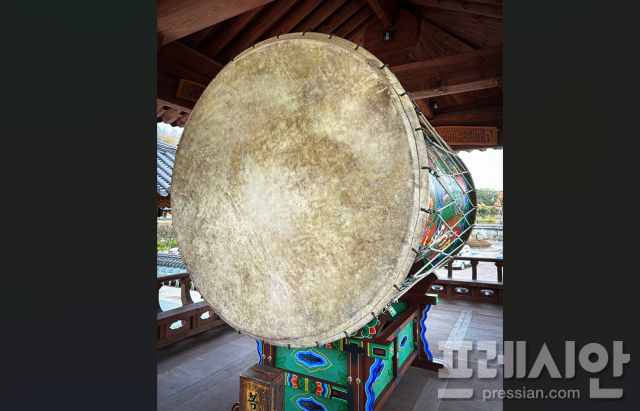 ▲산청 기산국악당의 대고(큰북). ⓒ프레시안(문상윤)