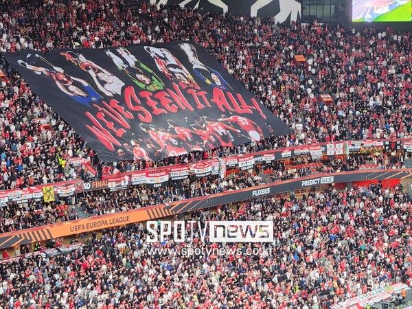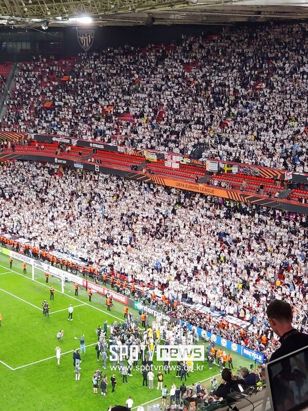 우승이 확정되는 순간, 너나 할 것 없이 서로 안고 소리치며 울던 토트넘 팬들이다. 반대로 맨유 선수들을 향한 맨유 팬들의 야유는 철저하게 묻혔다. 기대가 실망으로 바뀐 순간, 신속하게 경기장을 빠져나가는 모습이었다. 경기장 절반이 아틀레틱 빌바오의 상징이자 맨유의 상징인 붉은색 속살이 그대로 드러난 반면 그 반대는 새하얀 물결이 넘실거렸다.