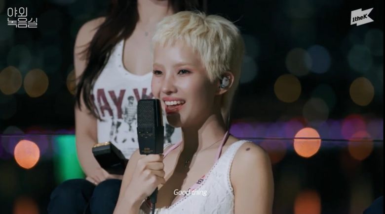 원더케이의 '야외녹음실'은 버스 안, 음식점, 카페, 슈퍼마켓 등 일상 속 공간을 배경으로 가수들의 라이브를 현장에서 듣는 듯 그대로 체험할 수 있는 참신한 기획 콘텐츠. 이날 까만 서울 도심을 배경으로 파격적인 숏컷과 화려한 의상 등 다채롭게 스타일링한 멤버들은 도심 속 색색의 조명과 어울려 도시적인 감성이 빛났다. 멤버들은 개성 넘치는 음색으로 폭발적인 라이브를 뽑아내며 'KPOP 라이브 퀸' 다운 면모를 보였다. 여기에 안무의 포인트 '엄지척' 퍼포먼스로 귀여움을 더하기도.