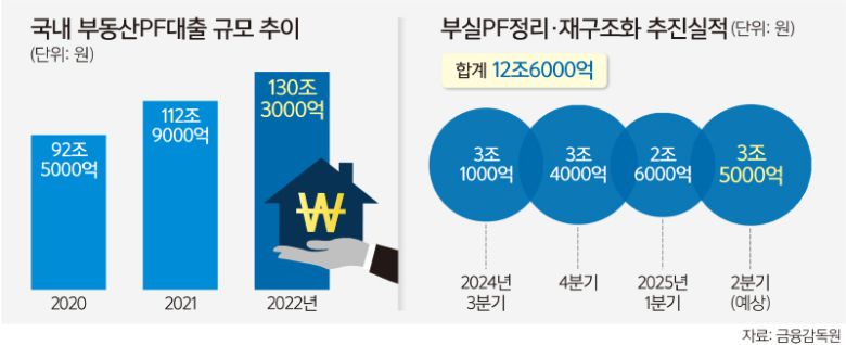 2022년말 레고랜드 사태, 2023년말 태영건설 사태를 계기로 부동산 PF 부실 우려가 확산하면서 금감원은 2024년 6월부터 부실 사업장을 선별해 정리와 재구조화에 들어갔다. 금감원에 따르면 전 금융권을 대상으로 두 차례에 걸쳐 실시된 PF 사업성 평가 결과, 부실 PF는 총 23조9000억원으로 집계됐다.