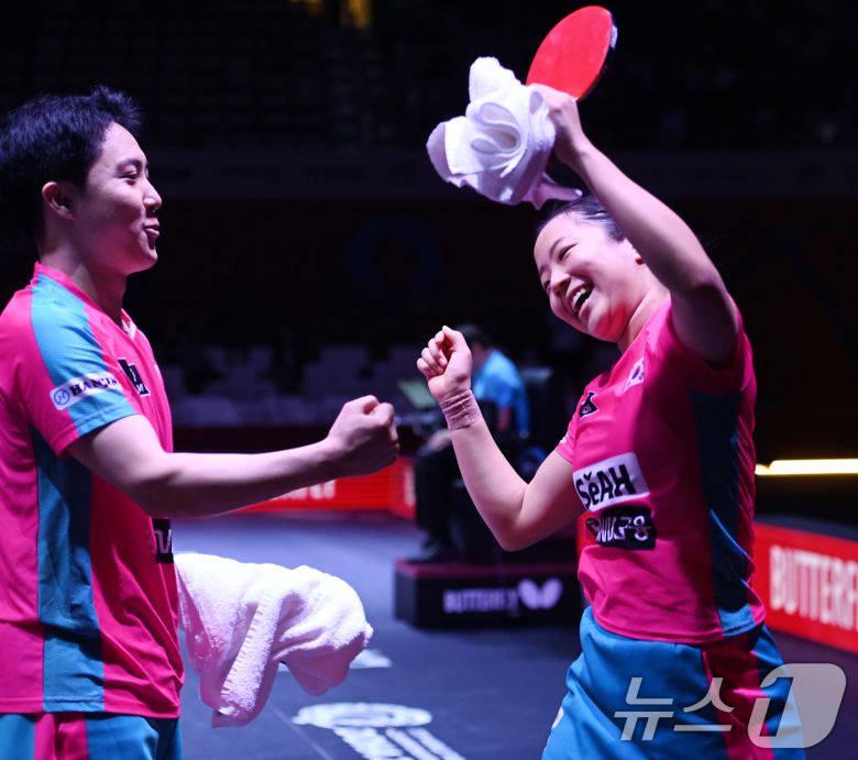 (서울=뉴스1) 사진공동취재단 = 임종훈, 신유빈이 22일 카타르 도하 루사일 아레나에서 열린 2025 국제탁구연맹(ITTF) 세계선수권대회 혼합복식 8강 대만 린윈주 - 정이칭과 경기 승리 후 환호하고 있다. 2025.5.22/뉴스1phonalist@news1.krCopyright ⓒ 뉴스1. All rights reserved. 무단 전재 및 재배포, AI학습 이용 금지.이 기사의 카테고리는 언론사의 분류를 따릅니다.0공유하기