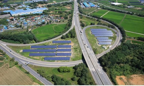 진천IC 녹지대 태양광 발전설비 설치 전경 [사진 = 한국도로공사] |