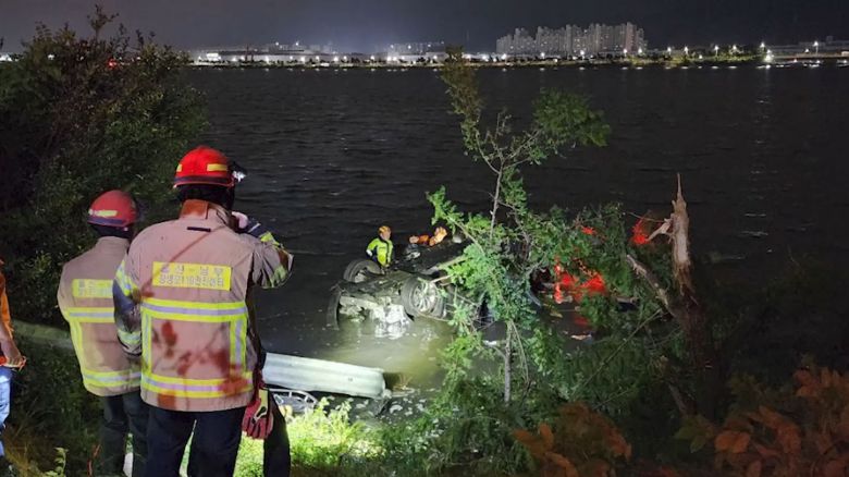 차량은 보호 난간을 뚫고 뒤집힌 채 강에 빠진 것으로 전해졌습니다.