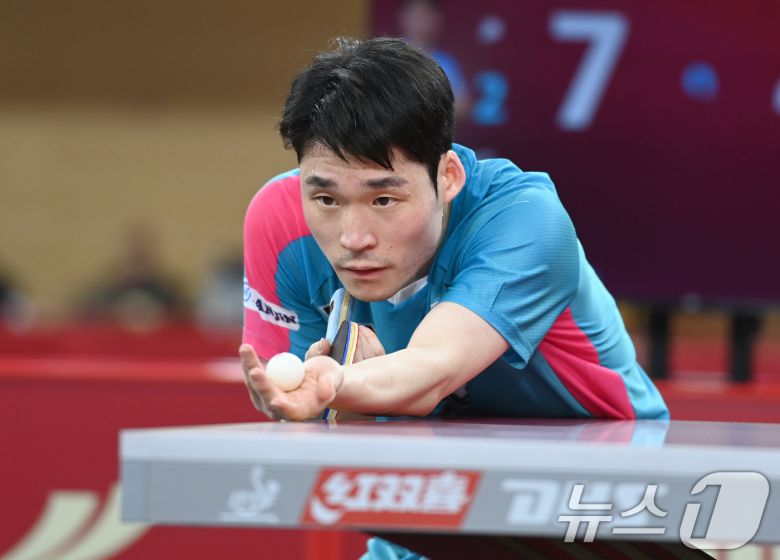 (도하(카타르)=뉴스1) 안영준 기자 = 남자 탁구대표팀의 에이스 장우진(세아)이 남자 단식 16강에서 다 잡은 듯한 경기를 놓쳐 탈락한 뒤 "남자부에서도 금메달이 나오도록 나부터 노력하겠다"고 말했다.