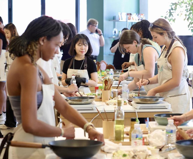 22일 서울 중구 샘표 ‘우리맛 공간’에서 열린 한식 쿠킹클래스에서 미국 조지아대 학생들이 한식을 요리하고 있다.