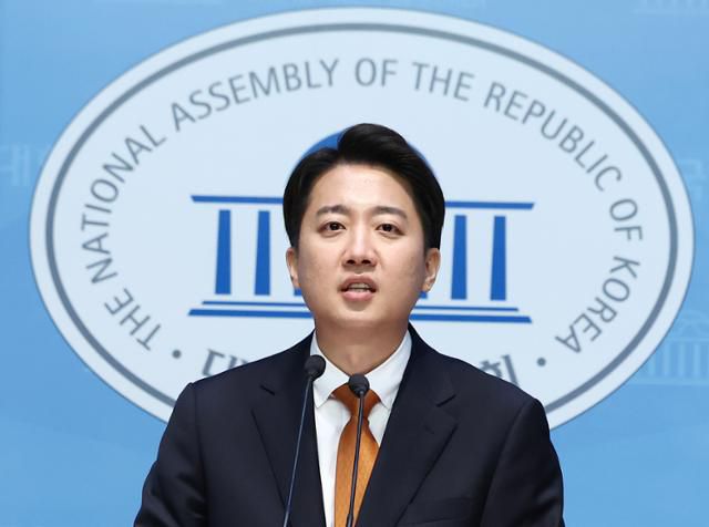 이준석 개혁신당 대선 후보가 22일 국회 소통관에서 단일화 관련 긴급 기자회견을 하고 있다. 뉴스1