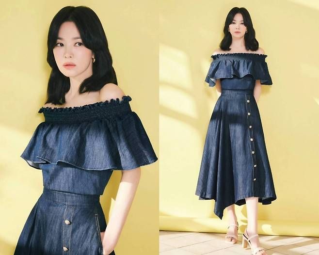 송혜교, 청순한데 세련됐다…데님 오프숄더 완벽 소화