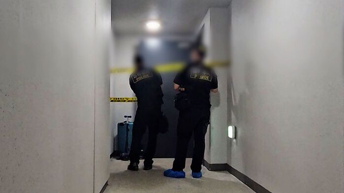 활짝 열린 현관 옆으로 경찰 과학수사대가 노란 출입통제선을 설치합니다.