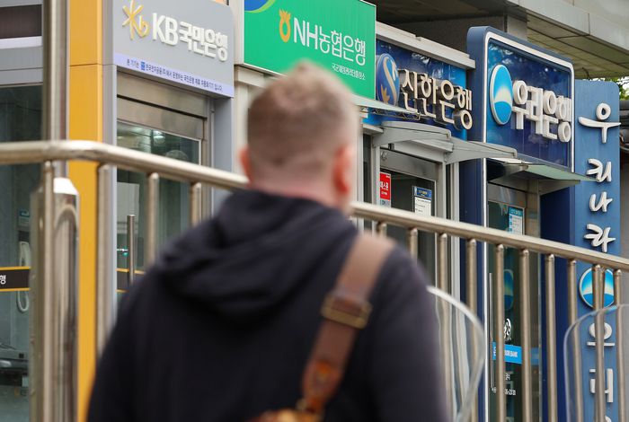 (서울=연합뉴스) 김도훈 기자 = 주요 시중은행들의 예대금리차(대출-예금 금리)가 역대급으로 커지고 있다. 5일 은행연합회 소비자 포털에 공시된 '예대금리차 비교' 통계에 따르면 올해 3월 5대 은행(KB국민·신한·하나·우리·NH농협)의 가계대출 예대금리차는 1.38∼1.55%포인트(p)로 나타났다.  신한은행(1.51%p)과 하나은행(1.43%p)의 3월 예대금리차는 2022년 7월 공시집계 이후 가장 컸으며 KB국민은행(1.49%p)는 2023년 1월 이후, 우리은행(1.38%p)은 2023년 2월 이후 가장 큰 폭을 기록했다.  사진은 5일 서울 시내의 ATM 모습. 2025.5.5     superdoo82@yna.co.kr