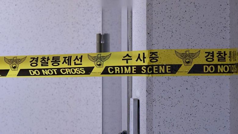 현관문 앞에는 노란색 출입 통제선이 붙었습니다.