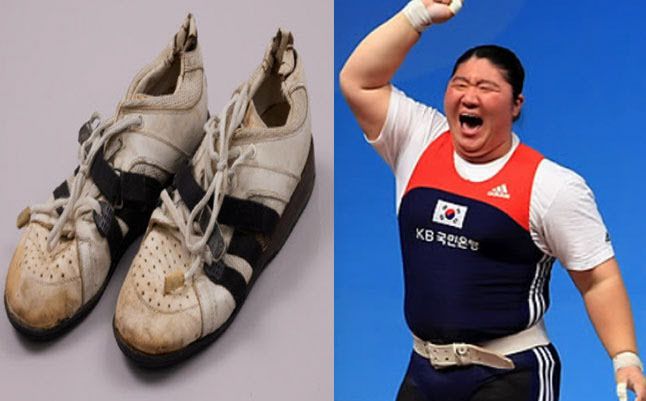 장미란 차관이 국립스포츠박물관에 기증하는 역도 선수 시절 역도화. (사진=문체부) |