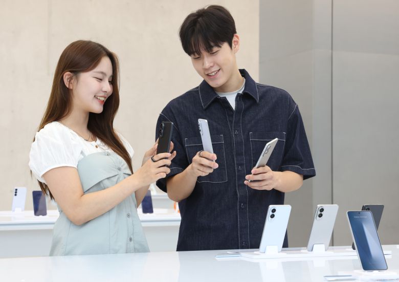 '삼성 강남'에서 '갤럭시 S25 엣지'의 초슬림 디자인을 체험하는 모습 |