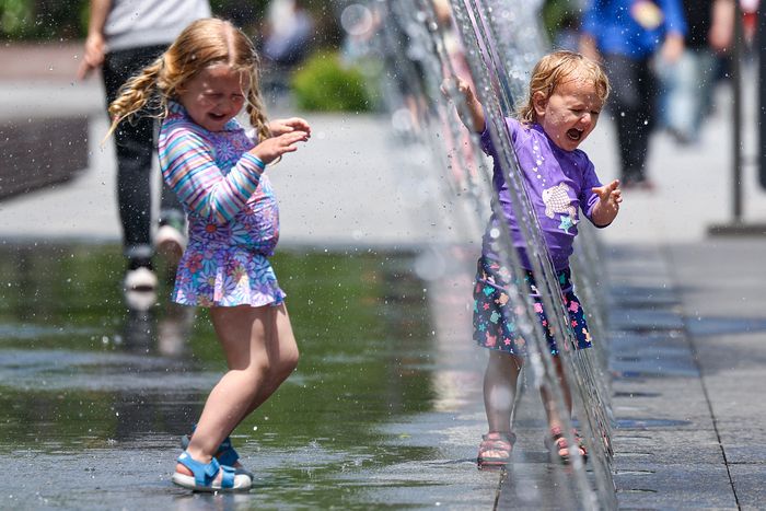 14일 서울 종로구 광화문 광장 터널분수에서 외국인 어린이들이 물놀이를 즐기고 있다. [사진 출처 = 연합뉴스] |