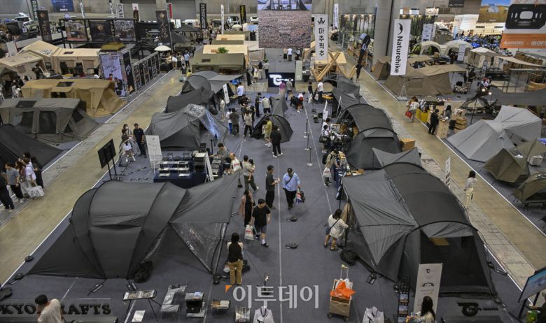23일 경기 고양시 킨텍스에서 열린 2025 국제아웃도어캠핑&레포츠페스티벌(2025 GOCAF)을 찾은 관람객들이 캠핑용품을 살펴보고 있다. 텐트, 침낭, 랜턴 등 캠핑 장비와 차박, 캠핑카 등 캠핑 관련 품목, 레저스포츠, 낚시 등 레포츠 물품을 한 자리 전시한 GOCAF는 이날부터 25일까지 사흘간 열린다. 조현호 기자 hyunho@ |
