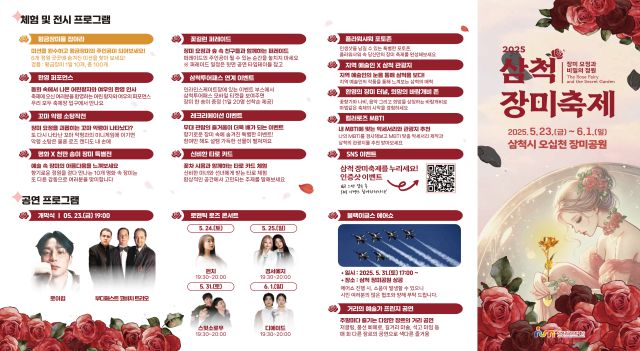 (재) 삼척관광문화재단은 5월 23일부터 6월 1일까지 10일간 삼척 장미공원 일원에서 '2025 삼척 장미축제'를 개최한다고 밝혔다.