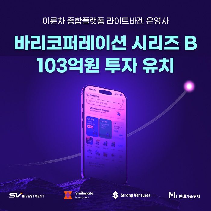(서울=뉴스1) 이재상 기자 = 이륜차 금융·커머스 플랫폼 '라이트바겐'을 운영하는 바리코퍼레이션이 시리즈 B 투자 라운드에서 103억 원을 유치했다고 23일 밝혔다.