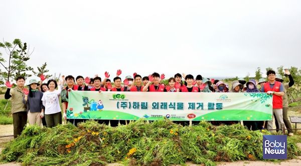 ㈜하림이 22일, 새만금환경생태단지에서 임직원 20여 명이 참여한 가운데 '생태계 교란 외래식물 제거 봉사활동’을 펼쳤다고 23일 밝혔다.