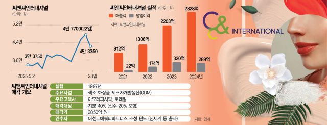 23일 투자은행(IB) 업계에 따르면 사모펀드(PEF) 운용사 어센트에쿼티파트너스(EP)는 씨앤씨인터내셔널 지분 40%를 2850억 원에 인수하는 내용의 계약을 체결했다고 공시했다. 기존 최대주주인 배은철 씨앤씨인터내셔널 회장 측이 보유한 지분 중 20%를 1400억 원에 인수하고 나머지는 1450억 원어치 신주를 발행해 사들인다는 계획이다. 어센트EP가 신세계를 포함해 기관투자가의 자금을 모아 펀드를 조성한 후 특수목적법인(SPC)에 투입하면 SPC가 씨앤씨인터내셔널의 최대주주가 된다.