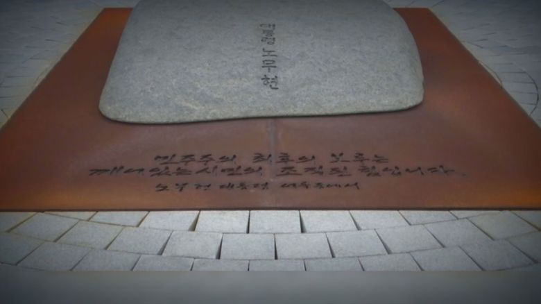 노 전 대통령 묘비에 새겨진 글로 추도식을 찾은 이들에게 큰 울림을 줬습니다.