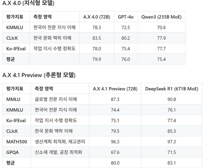 A.X 4.1, 딥시크 R1 추론 기능 평가 근접