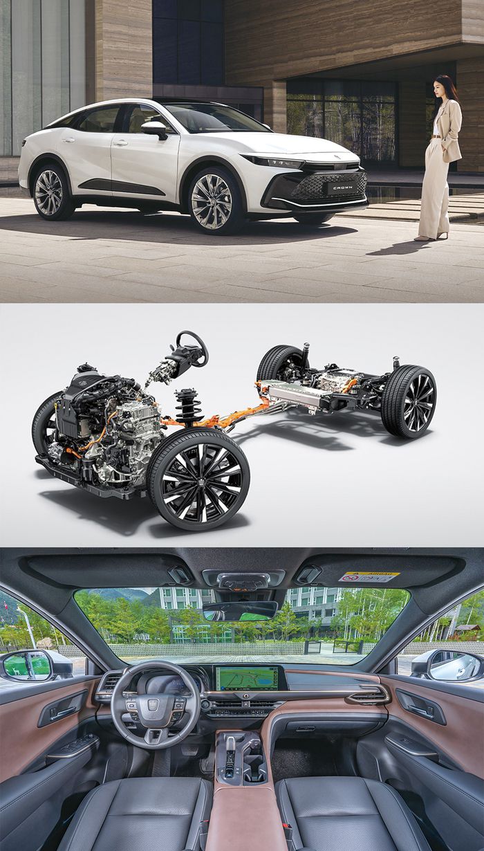 한국에서는 한국지엠의 전신인 신진자동차가 기술제휴를 통해 1967년부터 1972년까지 부평공장에서 크라운을 생산했다. 그랜저에 앞서 ‘사장차’이자 ‘관용차’로 사용됐지만 반짝 인기에 그쳤다. 일본에서만 평범한 직장인이 ‘성공하면 타는 차’이자 ‘아빠 차’로 대접받는 것으로 만족했다. 크라운은 16세대부터 글로벌 모델로 승격됐다. 국내에는 지난 2023년부터 출시됐다. 세단의 편안함과 SUV의 실용성을 결합한 크로스오버 모델이 판매된다. 토요타 크라운은 2.5 하이브리드 모델로 전자식 4륜구동을 채택했다. 시스템 총출력은 239마력, 복합연비는 17.2km/ℓ다.