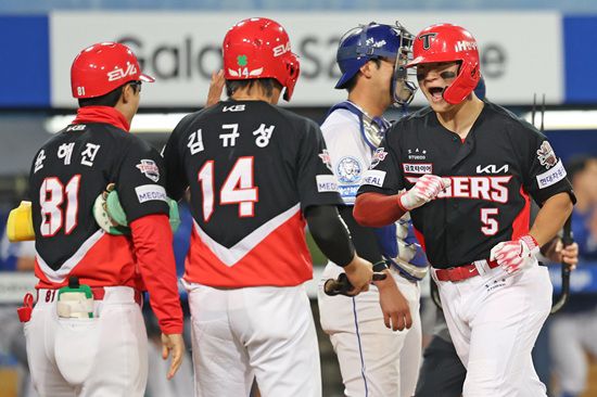 KIA도 가만히 있지 않았다. KIA는 5회 초 선두타자 오선우의 우익선상 2루타 뒤 상대 포일로 무사 3루 기회를 얻었다. 이어 김석환의 유격수 땅볼 때 오선우가 홈을 밟아 4-4 동점이 이뤄졌다.