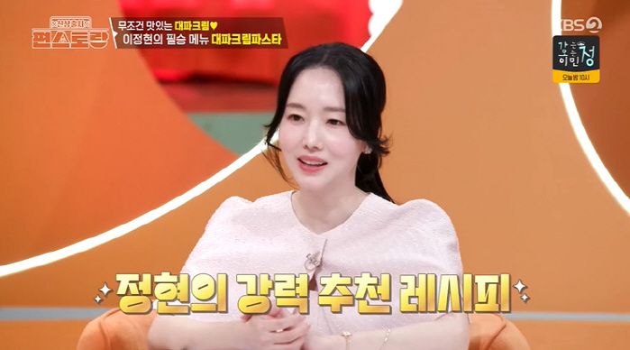 이정현의 저녁 메뉴는 대파크림파스타. 남편과 함께 저녁을 먹으며 스케줄을 얘기한 이정현. 이정현은 "전주 있을 때 아기 잘 봐야 한다"고 말해 궁금증을 모았다.