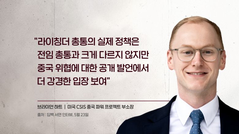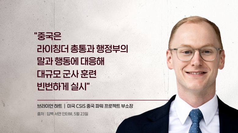 라이칭더 총통의 실제 정책은 전임 총통과 크게 다르지 않지만 중국 위협에 대한 공개 발언에서 더 강경한 입장을 보이기 때문에, 중국의 맞대응도 더 강하게 나오는 측면이 있다고 미국 CSIS의 중국 전략을 연구하는 브라이언 하트 부소장이 저희와의 인터뷰에서 이야기 했습니다.