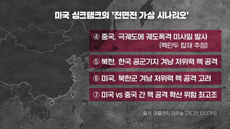 그다음 북한이 한국 공군기지에 저위력 핵 공격을 강행하고, 이에 따라 미국도 북한군에 저위력 핵 공격으로 맞대응을 고려한다는 가정이 이어졌습니다.