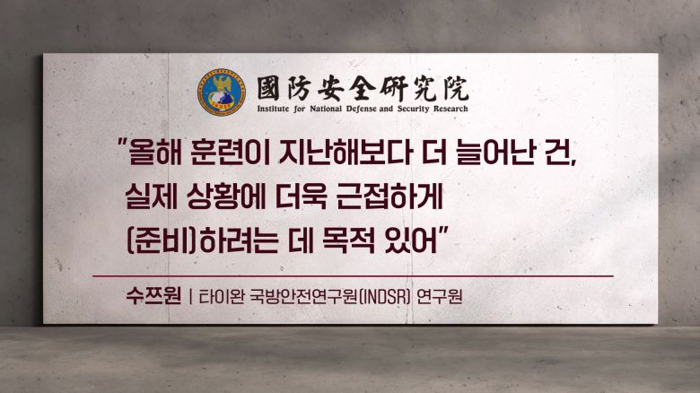 타이완 국방부 싱크탱크의 한 연구원은 '올해 훈련이 지난해보다 더 늘어난 건 실제 상황에 더 근접하도록 하려는 데 목적이 있다'라고 말했습니다.