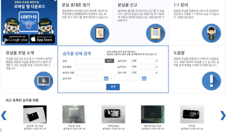 경찰청 유실물 종합관리 시스템 이미지 [홈페이지 캡처] |
