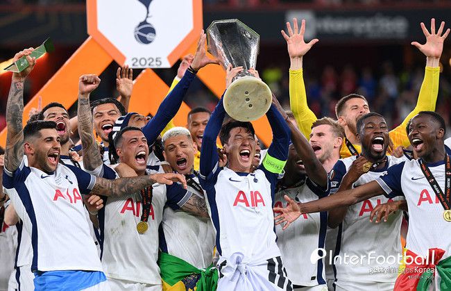 토트넘 훗스퍼는 22일 오전 4시(한국시간) 스페인 빌바오에 위치한 에스타디오 산 메마스에서 열린 2024-25시즌 유럽축구연맹(UEFA) 유로파리그(UEL) 결승전에서 맨체스터 유나이티드를 상대로 1-0으로 승리했다. 이로써 토트넘은 우승 트로피를 거머쥐었다.