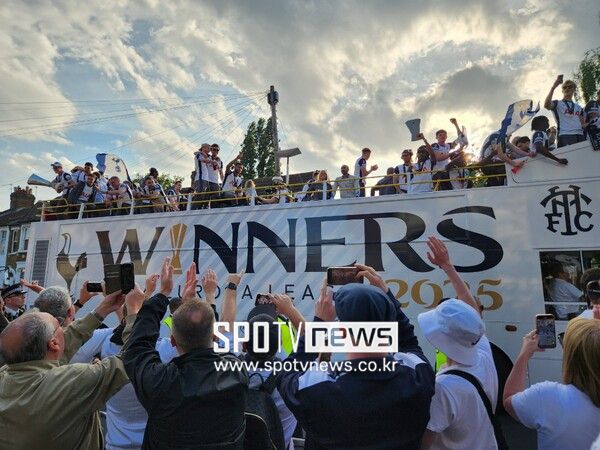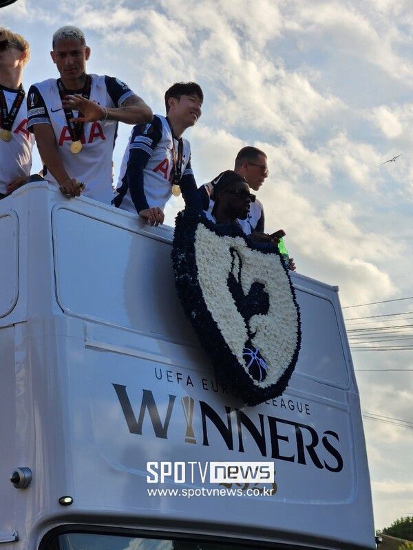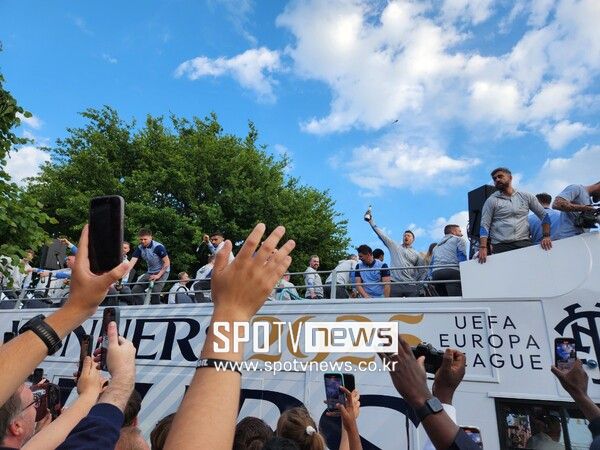 24일 오전(한국시간) 영국 런던 토트넘 홋스퍼 스타디움 일대는 인산인해였다. 현지시간으로 23일 오후 5시 30분부터 2024-25 유럽축구연맹 유로파리그(UEL) 결승전에서 맨체스터 유나이티드를 1-0으로 꺾고 우승을 차지한 토트넘 선수들의 화려한 대관식이 열렸기 때문이다.