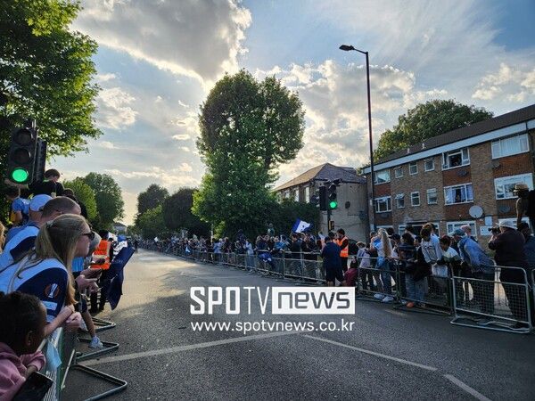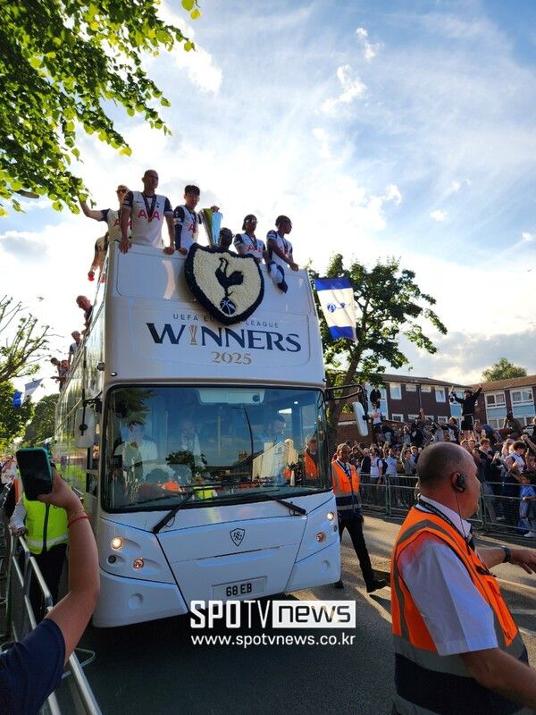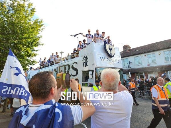 선두 버스의 전면에는 역시 손흥민이 있었다. 히샤를리송, 크리스티안 로메로 등이 전면에서 손을 흔들며 팬들의 목소리에 화답했다. 엔제 포스테코글루 감독은 버스 뒤쪽에서 팬들의 박수에 대답했다.