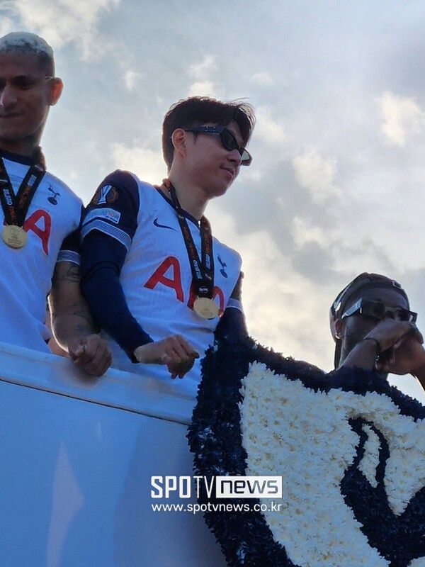 좌우로 늘어선 팬들은 역시 손흥민의 이름을 가장 많이 연호했다. 손흥민은 우승의 맛을 뜨겁게 즐기는 모습이었다. 선글라스를 쓰고 우승컵을 들고 경기 종료 후 시상식 모습을 똑같이 보여주며 환호했다.