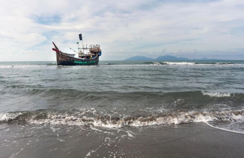 지난 2023년 인도네시아 아체의 해변에 로힝야 난민을 태운 배가 해안에 정박해 있다. UNHCR |