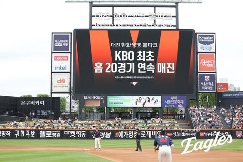 프로야구 한화, 20경기 연속 홈 경기 매진